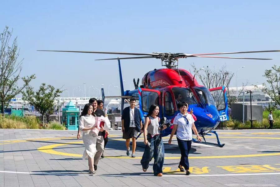 近日,上海国际邮轮旅游度假区海上世界停机坪人气高涨 —— 由度假区携手林洋航空、新空直升机联合推出的国庆直升机 10 分钟飞行体验活动在此热闹开启。现场,新婚夫妇、邮轮游客及通过抽奖获得资格的普通市民纷纷参与,亲身感受低空飞行的震撼,不少参与者表示 “这是一次颠覆想象的独特体验”。